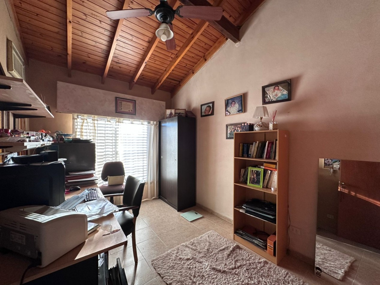 En la planta alta, se destaca un espacio amplio para escritorio o zona de estudio, tres habitaciones bien distribuidas, un baño completo y un dormitorio principal con vestidor.