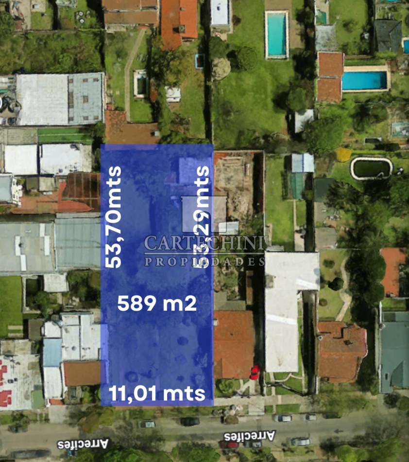 11,01 mts de frente por 53.29 mts de fondo.