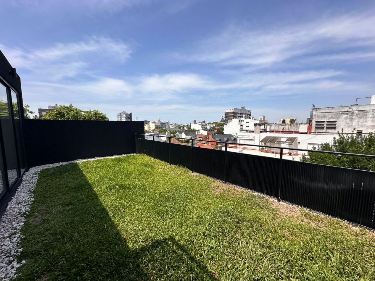 73,6 m² cubiertos + 13,3 m² semicubiertos + COCHERA para dos autos