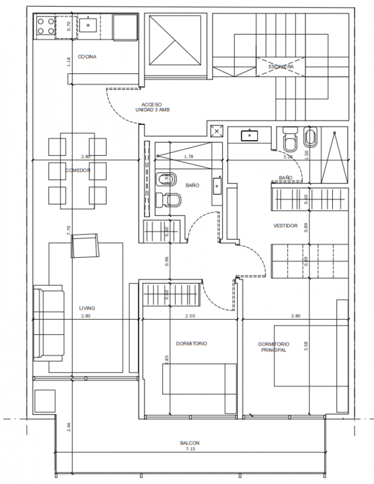 Tercer Piso – UF 5 (3 ambientes – 80,25 m² totales)