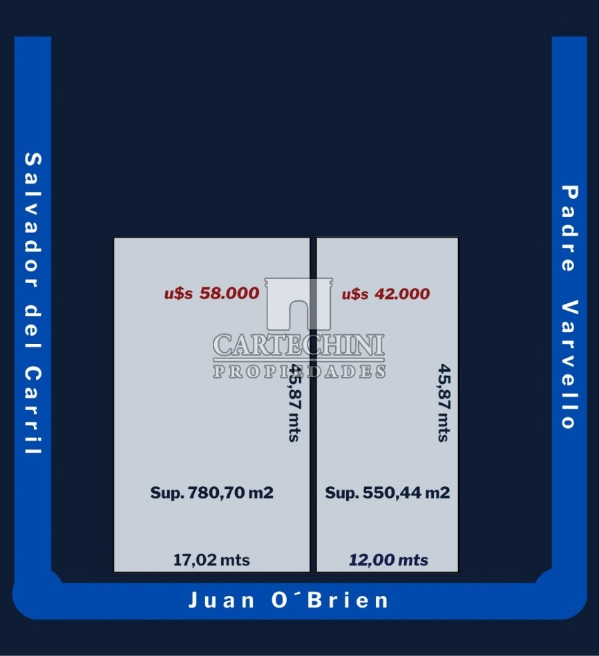 Medidas de 12,00Mts x 45,87